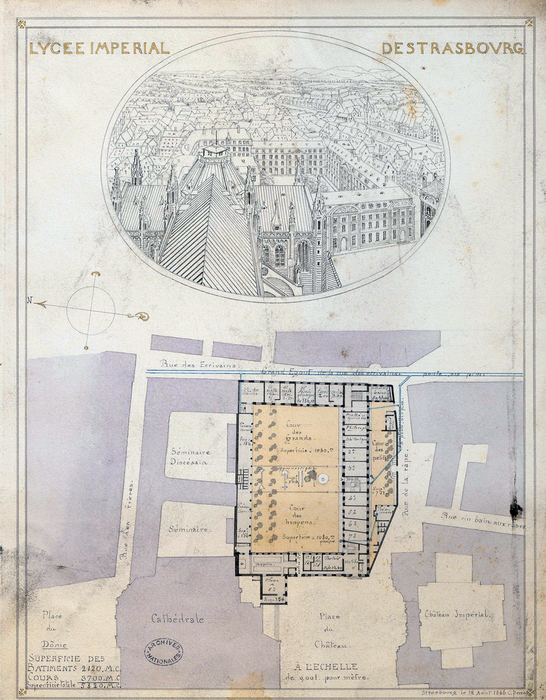 Plan atlas des lycées : vues du lycée impérial de Strasbourg. 1861.