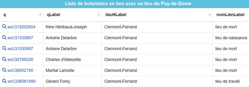 Liste de botanistes en lien avec un lieu du Puy-de-Dôme (2-3 trucs inhabituels pour obtenir la liste et le libellé du lien) (